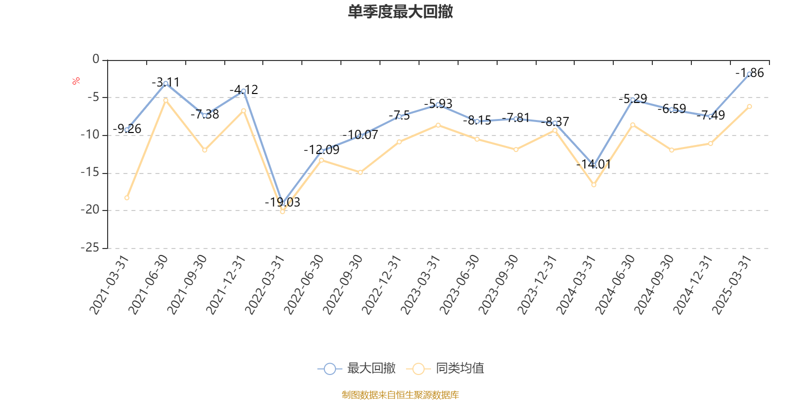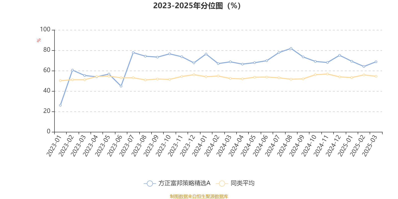 通过所选区间该基金净值增长率分位图,可以观察该基金与同类基金业绩比较情况。图为坐标原点到区间内某时点的净值增长率在同类基金中的分位数。