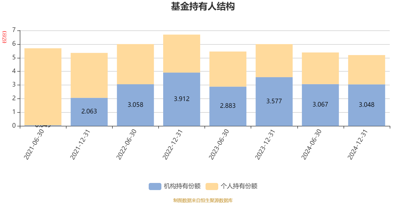截至2024年12月31日,基金持有人共计6774户,合计持有5.2亿份。其中管理人员工持有76.82万份,占比0.15%,机构持有份额占比58.66%,个人投资者占比41.34%。